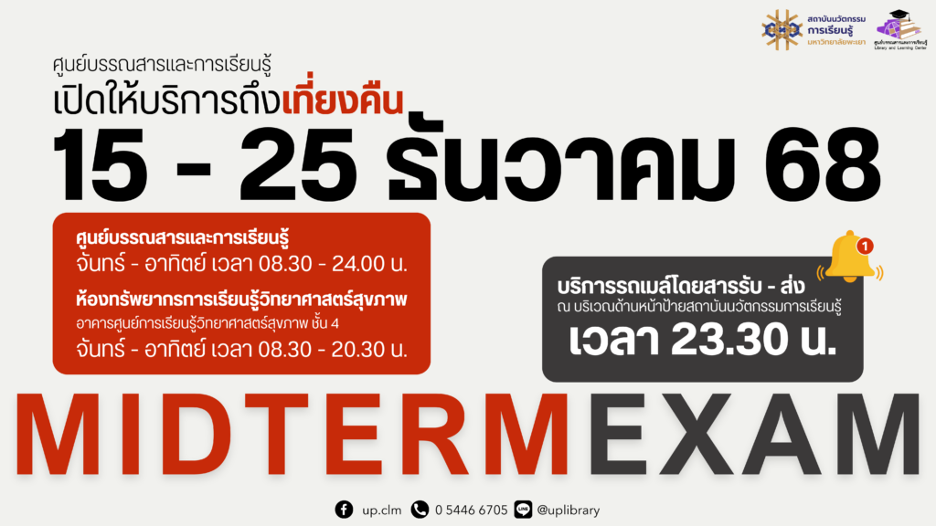 ศูนย์บรรณสารและการเรียนรู้ สถาบันนวัตกรรมการเรียนรู้ ประกาศขยายเวลาเปิดให้บริการช่วงสอบกลางภาค!
