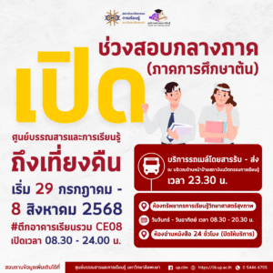 สถาบันนวัตกรรมการเรียนรู้ แนะนำการใช้บริการศูนย์บรรณสารและการเรียนรู้สำหรับนิสิตใหม่ ประจำปีการศึกษา 2568 (ฟ้ามุ่ยช่อที่ 15)